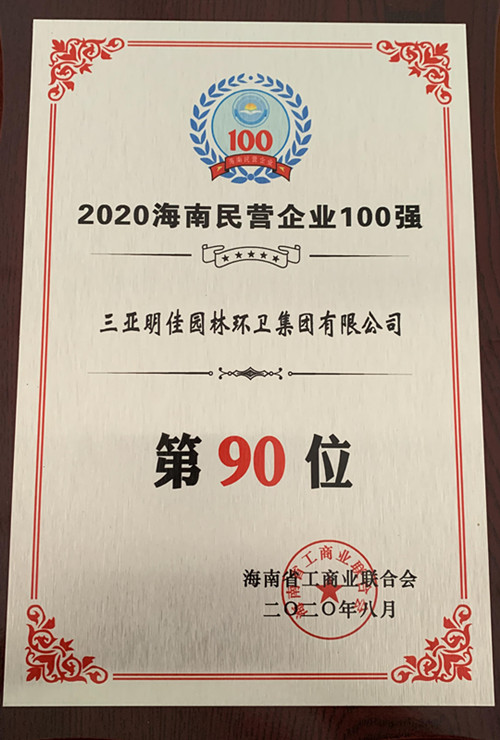 8月28日,“2020海南民營企業(yè)百強發(fā)布會”在?谂e行。三亞明佳園林環(huán)衛(wèi)集團有限公司再次入選“海南民營企業(yè)100強”榜單,名列第90位。